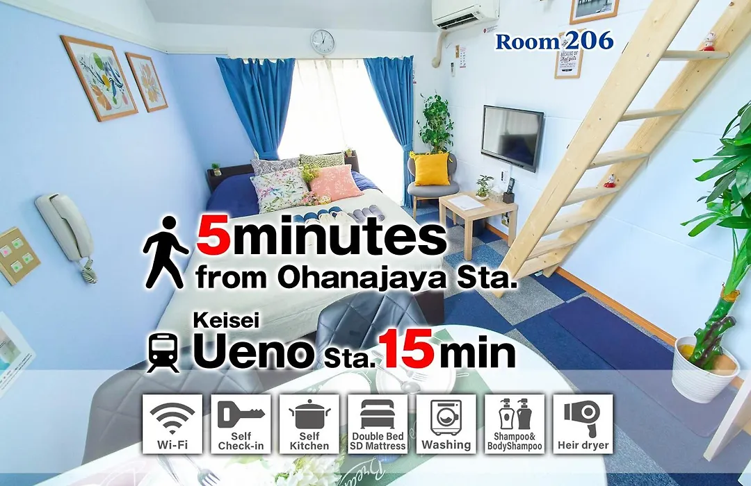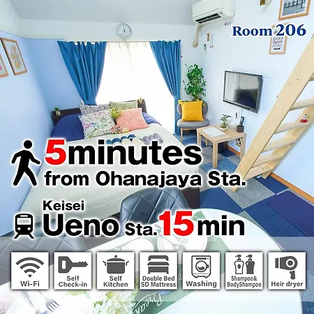 The 18 m² Sc 206 Cozy Private Stay With Loft Near Station Free Wifi Tokyo apartment is situated 250 m from the Ohanajaya Park and 35 km from Tokyo International airport.